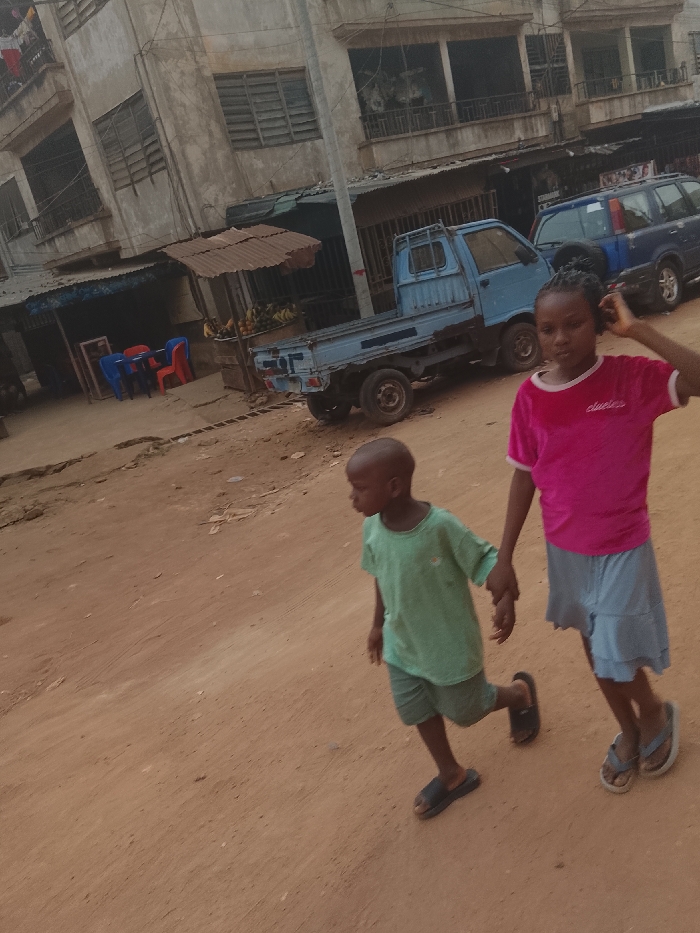 - "The image depicts two children walking hand-in-hand on a reddish-brown dirt path in Onitsha, Nigeria" by FM-mJtZ02, licensed under CC BY 4.0