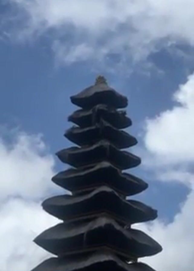 - "top of a Balinese pagoda against a blue sky with puffy white clouds" by FM-xgQP92, licensed under CC BY 4.0