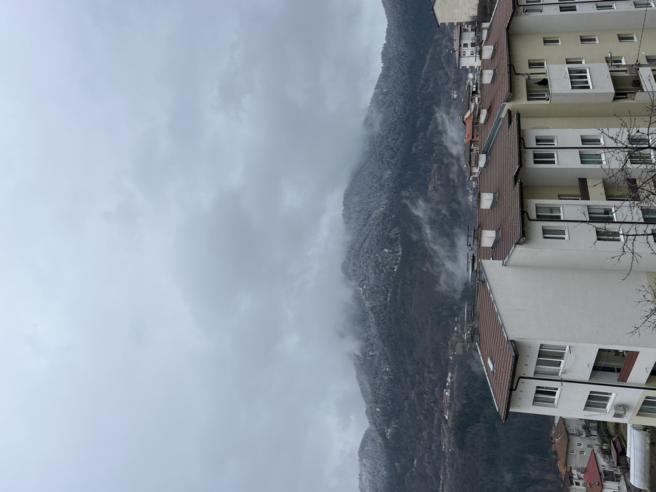 An elevated view captures a winter landscape in Smolyan, Bulgaria