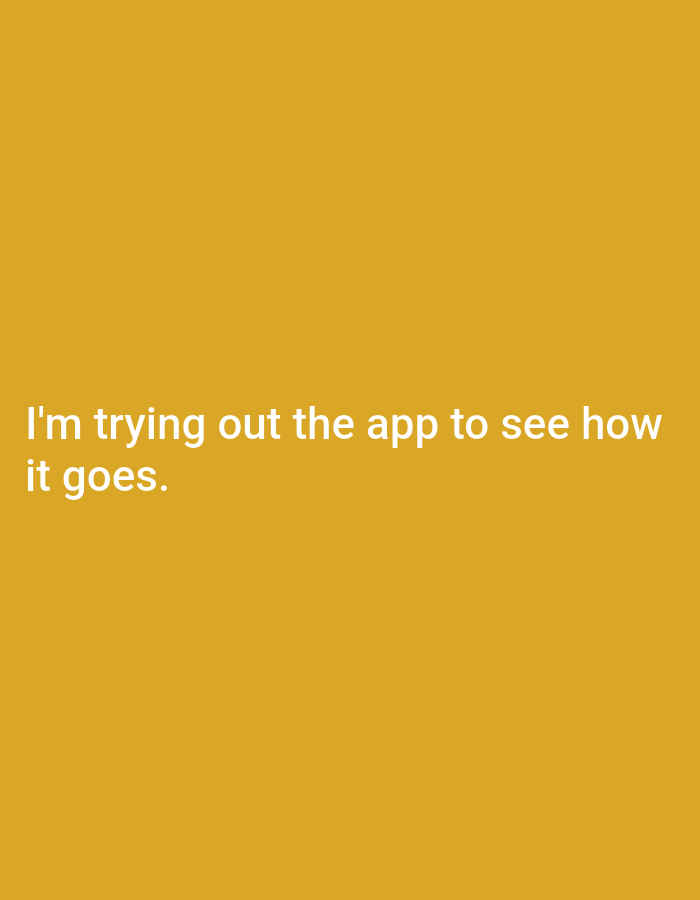 - "The image is a solid yellow background with the text "I'm trying out the app to see how it goes" by FM-jlaCz2, licensed under CC BY 4.0