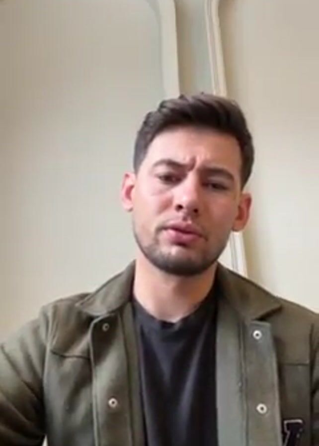 A man in a green jacket is pouring tea into a glass cup from a silver teapot