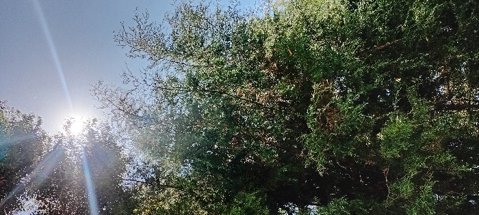 - "The image, reportedly captured in Heni Village, Kenya, depicts an upward view through a dense canopy of green trees against a clear blue sky" by FM-e7yqA2, licensed under CC BY 4.0