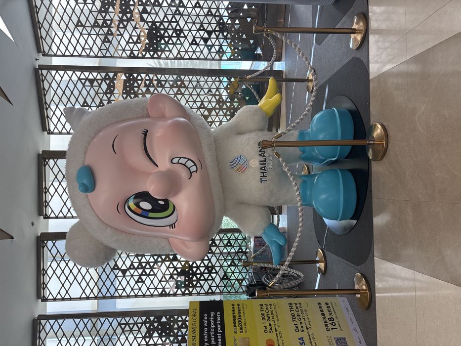 A large, stylized mascot promoting "Thailand 2025" is prominently displayed