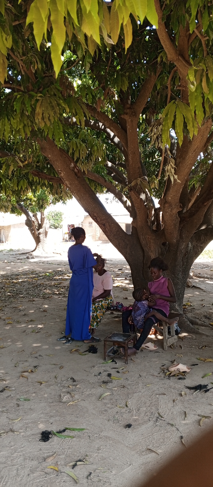 In Kakau, Nigeria, four individuals are observed outdoors beneath a large, leafy tree providing significant shade