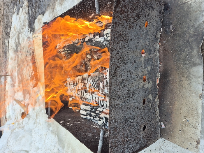 - "This image depicts an outdoor scene in Chaikovsky, Russia, centered on a freestanding, rectangular metal brazier exhibiting significant rust and charring" by FM-R23i82, licensed under CC BY 4.0