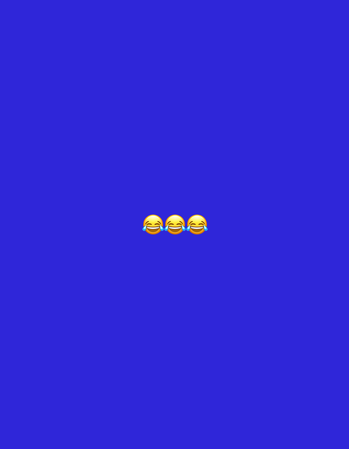 Three laughing-crying emojis are centrally located against a solid blue background