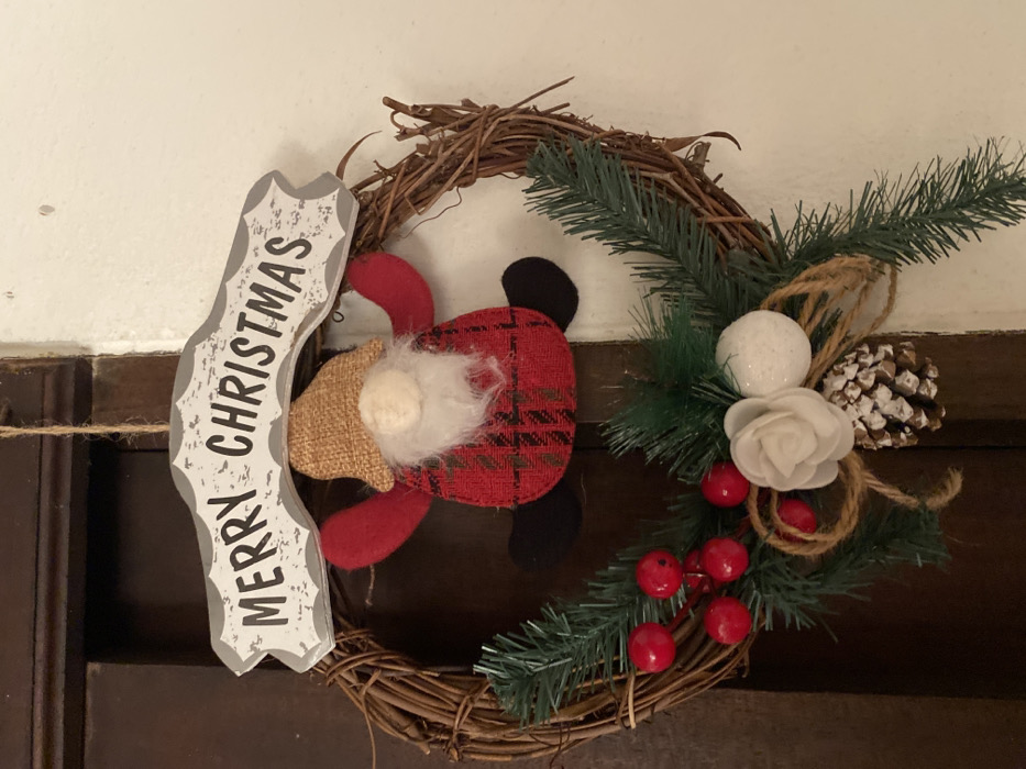 - "A Christmas wreath is depicted hanging indoors against a dark brown door, with a white wall visible to the right, in บ้านบางรักษ์, Thailand" by FM-CADnL2, licensed under CC BY 4.0