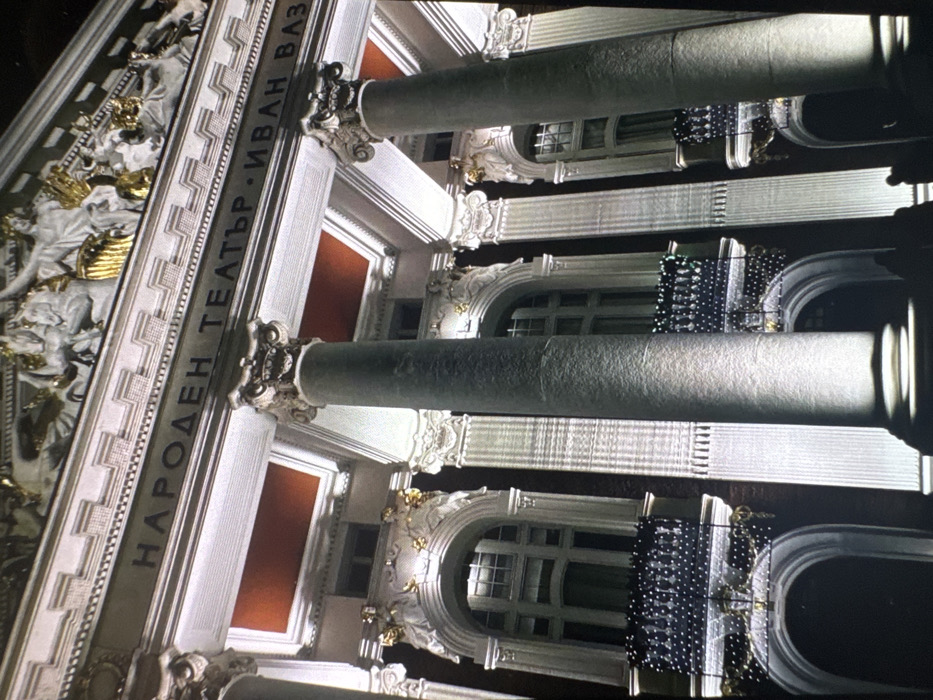 - "The image displays the illuminated facade of a large, classical-style building at night, identified by the inscription "НАРОДЕН ТЕАТЪР · ИВАН ВАЗОВ" (Ivan Vazov National Theatre) on its frieze" by FM-w1o9p2, licensed under CC BY 4.0