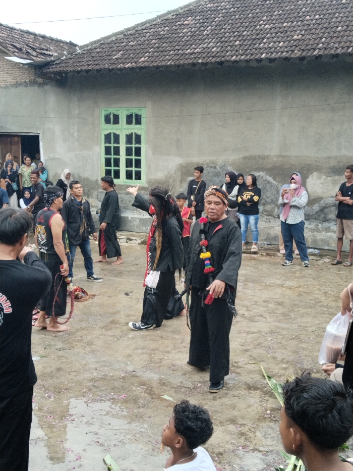 The scene depicts an outdoor cultural or ceremonial event taking place in the city of Kerjo, Indonesia