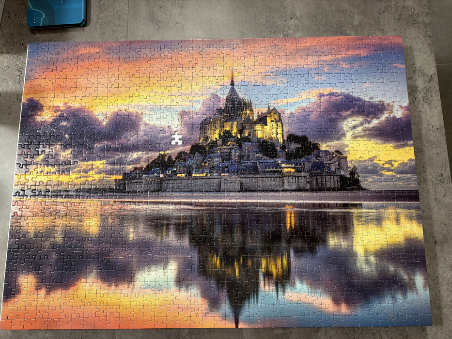 - "An assembled jigsaw puzzle is centrally positioned on a dark grey tiled floor, viewed from a slightly elevated angle" by FM-nFXPN2, licensed under CC BY 4.0