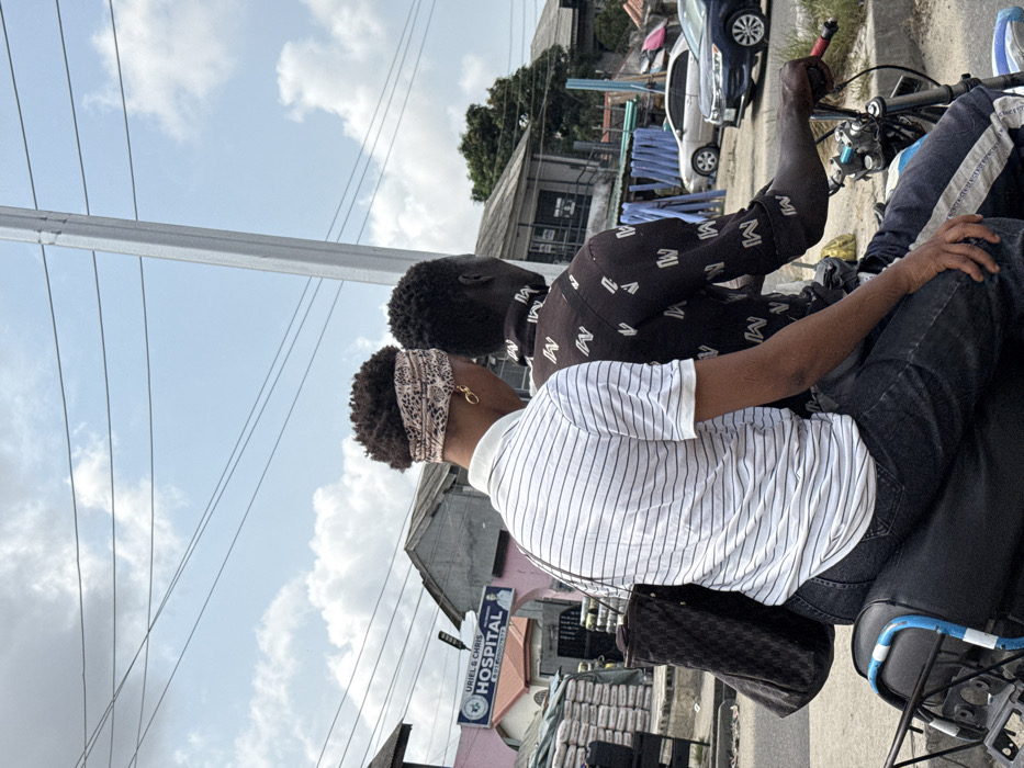 - "Two individuals are depicted riding a blue and black motorcycle on an urban street in Ado, Nigeria, during daytime under a partly cloudy sky" by FM-yhzPH3, licensed under CC BY 4.0