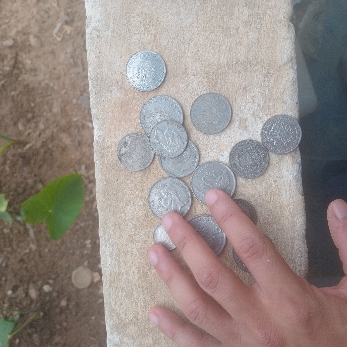 - "The scene, located in Cujisal, Venezuela, presents an overhead view of a human hand and a collection of coins on a light-colored, rough concrete or stone surface" by FM-WujkC2, licensed under CC BY 4.0