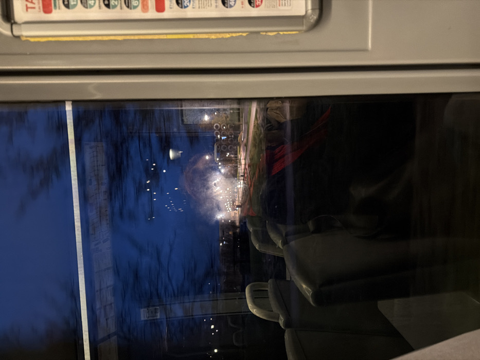 - "A train window reflects a twilight scene" by FM-iVf172, licensed under CC BY 4.0