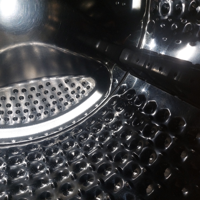 - "The image displays the interior of a domestic washing machine drum, constructed from polished, highly reflective stainless steel" by FM-xMf1b2, licensed under CC BY 4.0