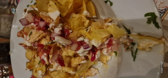 - "A white ceramic plate, containing a serving of loaded potato crisps, is centrally positioned on a patterned surface" by FM-PD02y1, licensed under CC BY 4.0