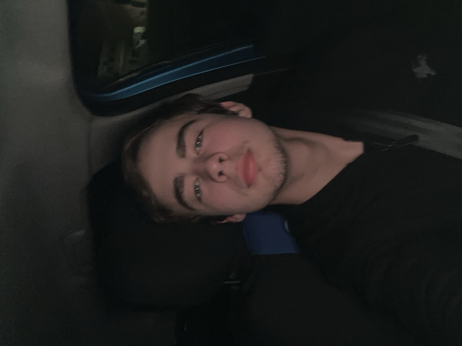 - "A young man with light hair and a trimmed beard lies sideways in what appears to be a car" by FM-5WnvD2, licensed under CC BY 4.0