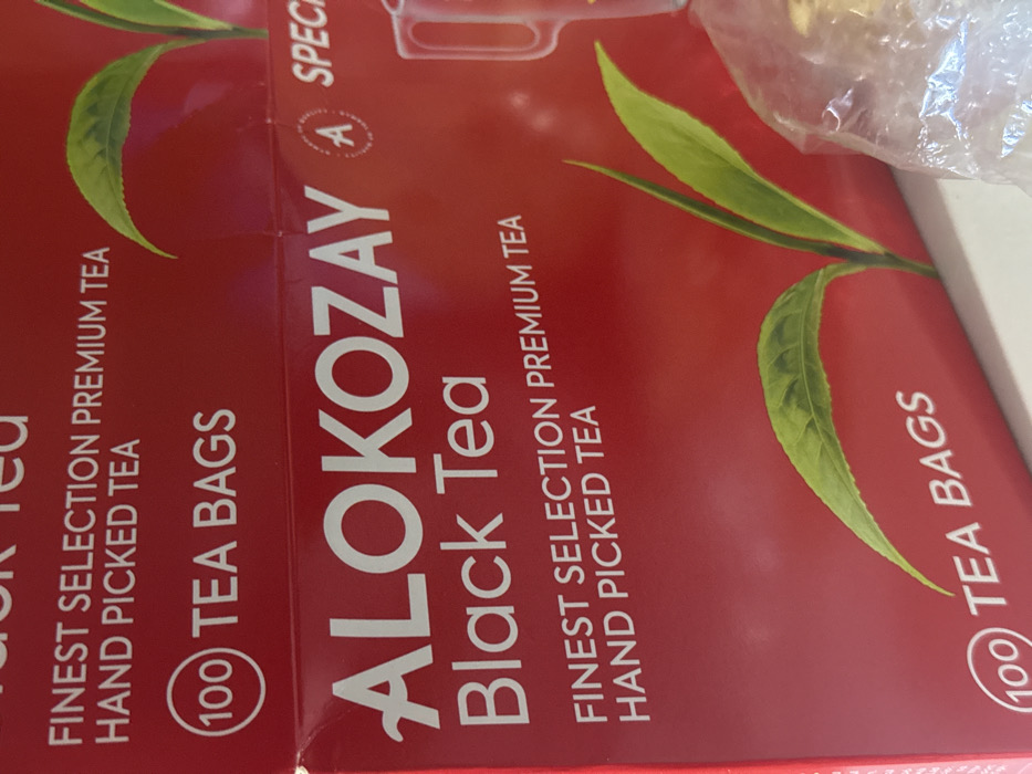 - "The image displays a close-up view of two stacked red cardboard boxes of Alokozay Black Tea" by FM-octGQ2, licensed under CC BY 4.0