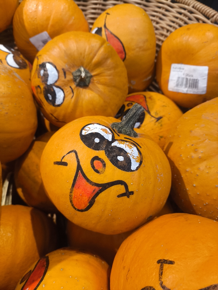 - "The image displays a close-up, high-angle view of numerous small, bright orange pumpkins contained within a woven basket" by FM-QaLrL2, licensed under CC BY 4.0