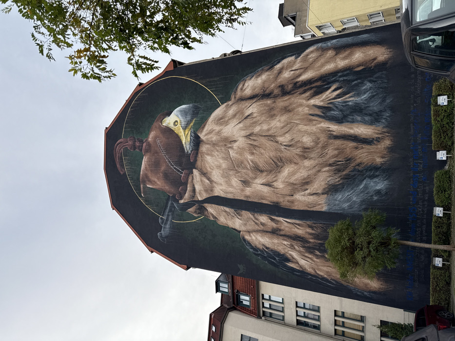 - "A large-scale mural, approximately six stories high, dominates the gable end of a residential building at Luisenstraße 132 in Wuppertal-Elberfeld, Germany, under an overcast sky" by FM-xKTK43, licensed under CC BY 4.0