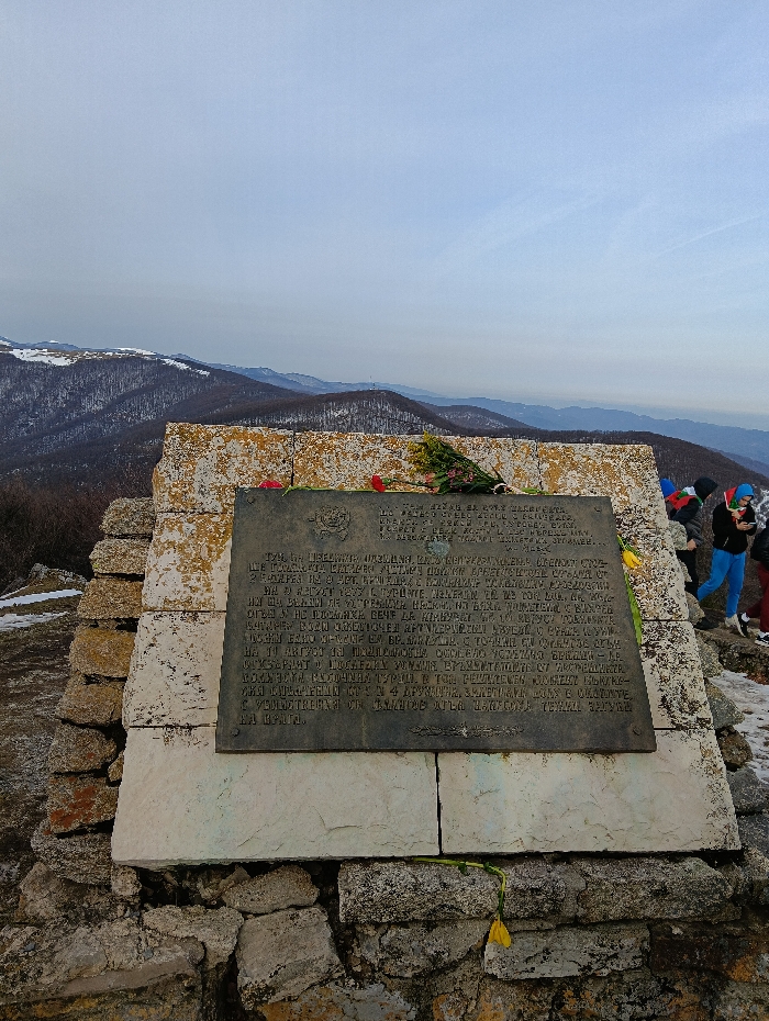 - "A bronze commemorative plaque with Cyrillic inscription is centrally positioned on a multi-tiered monument constructed from irregular, weathered stone blocks, located in the mountainous region near Shipka, Bulgaria" by FM-pCKFi2, licensed under CC BY 4.0
