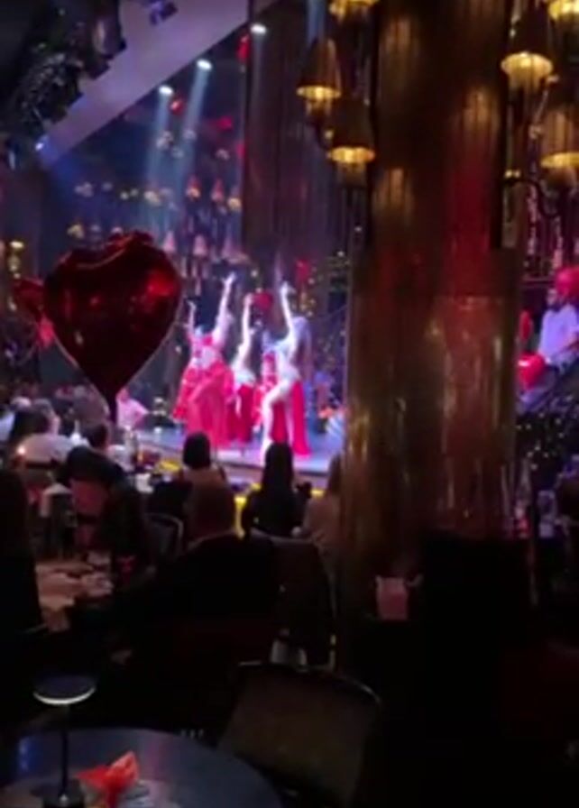 The video captures a performance in an opulent nightclub