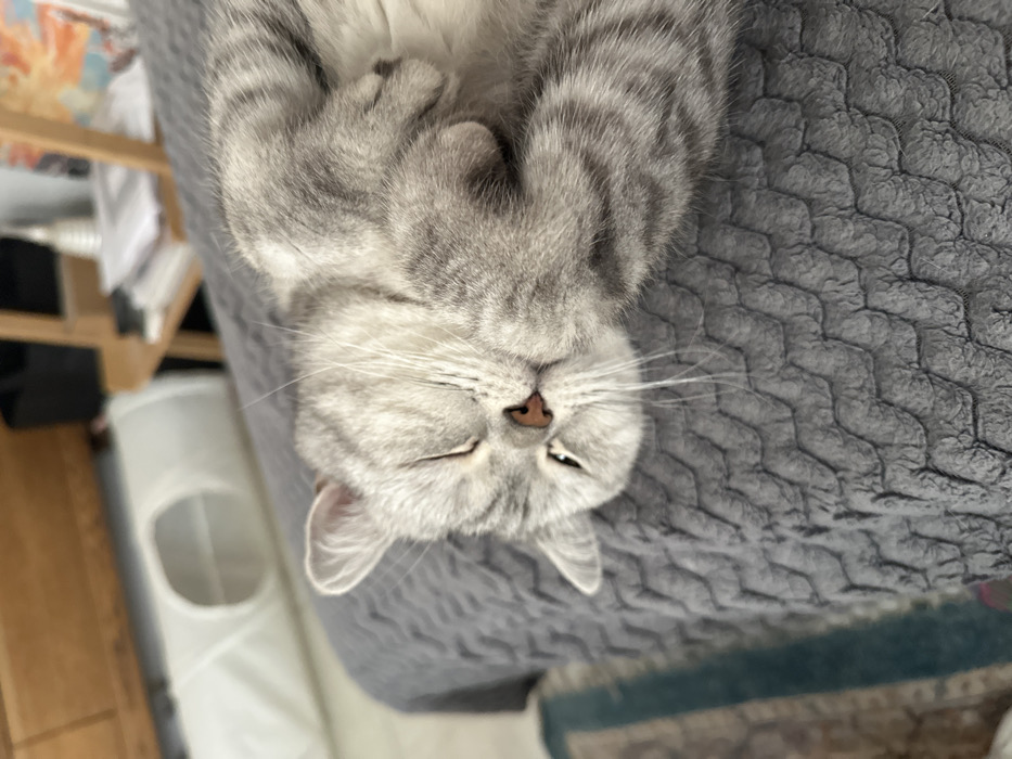 - "A light gray domestic cat with tabby stripes is depicted resting indoors, likely within a residential dwelling" by FM-IgLYH3, licensed under CC BY 4.0