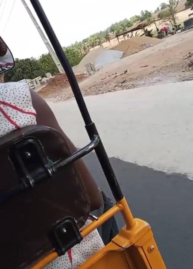 The video, shot from the passenger seat of a yellow auto-rickshaw, shows a ride through a rural or semi-rural area
