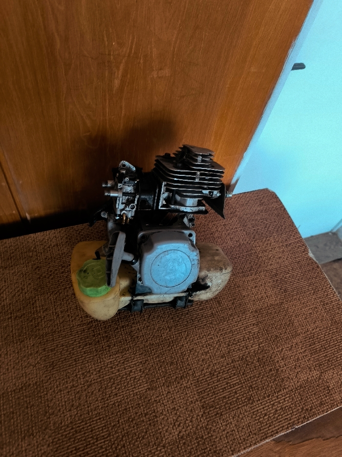 - "The scene, located in Sliven, Bulgaria, features a detached small internal combustion engine positioned on a textured, reddish-brown fabric surface" by FM-ZGyvI3, licensed under CC BY 4.0