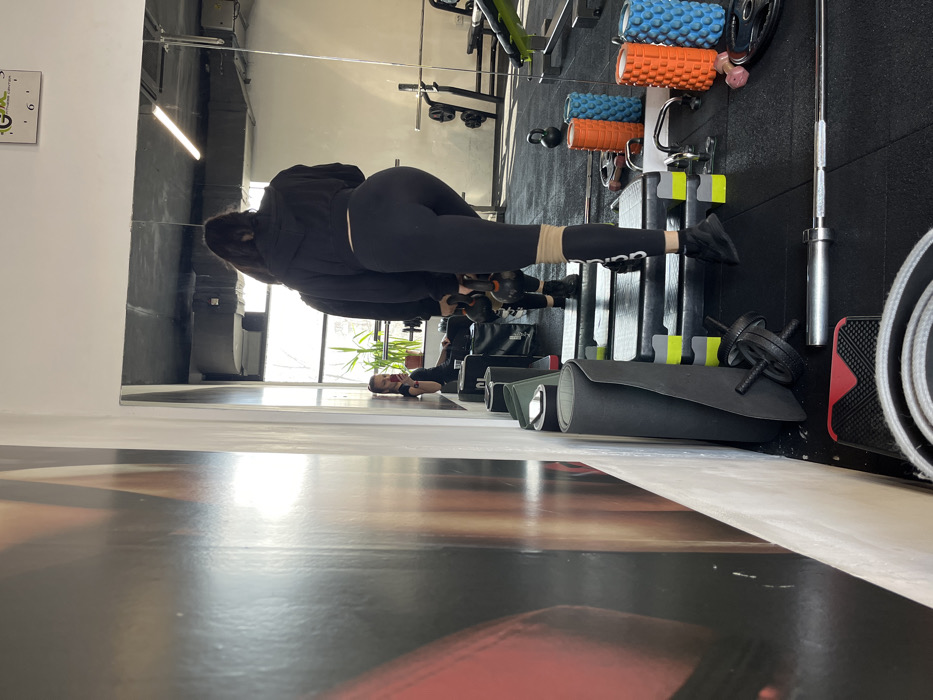 The image depicts an indoor gym environment in Sofia, Bulgaria, primarily viewed through a large mirror