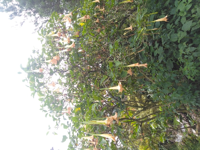- "A large Brugmansia (Angel's Trumpet) plant is depicted in an outdoor setting within El Rincón de Monagas, Venezuela" by FM-f4dh13, licensed under CC BY 4.0