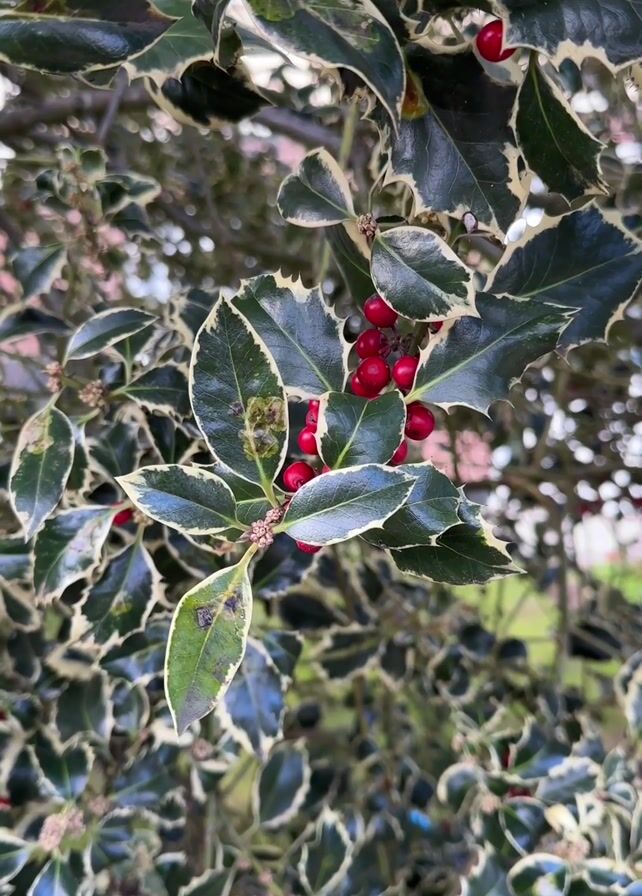 - "close-up shot of a variegated holly bush" by FM-XMDnw2, licensed under CC BY 4.0