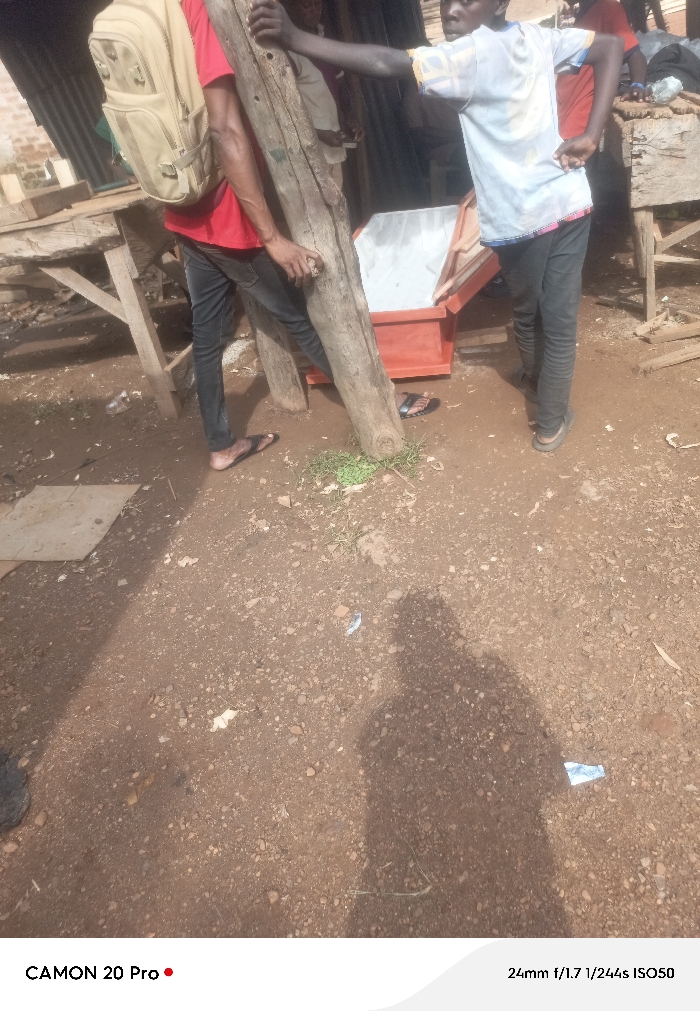 This image depicts an outdoor scene in Markurdi, Nigeria, characterized by an unpaved, reddish-brown dirt and gravel ground