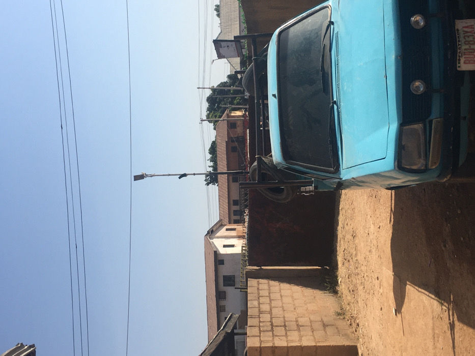 - "The image displays an outdoor, sunny daytime scene in Jos, Nigeria, featuring a light blue (cyan) pickup truck, likely a Peugeot 504 model, parked on an unpaved, reddish-brown dirt surface" by FM-pNxxB3, licensed under CC BY 4.0