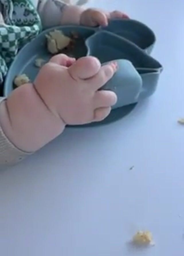 baby sitting at a round white table