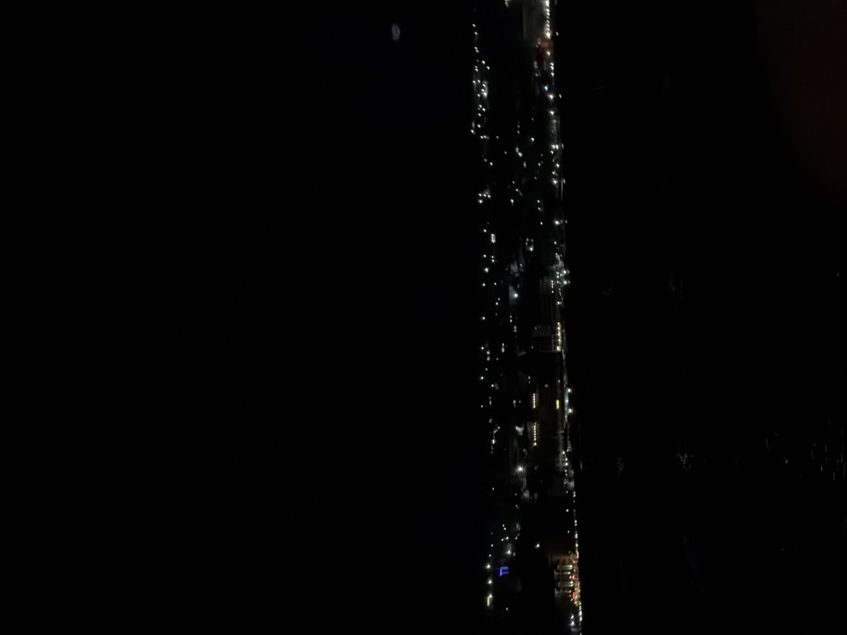 The image displays a panoramic nighttime view of the city of Balchik, Bulgaria. The scene is dominated by darkness, illuminated primarily by artificial lights from buildings and infrastructure. In the foreground, a dark, indistinct body of water is visible, with subtle hints of surface texture or reflections. The midground features a prominent horizontal band of scattered city lights, indicating structures and activity along what appears to be a coastal or waterfront area. These lights vary in intensity and color, predominantly appearing as white, yellow, and orange points, with a few faint blue lights discernible. Above this line of lights, the background reveals a hilly or elevated urban landscape, where numerous additional lights ascend into the darkness, suggesting residential or commercial areas built on inclines. No discernible individuals, specific objects, or distinct actions are visible within the frame due to the distance, low light conditions, and overall blurriness. The environment is urban, observed from a vantage point overlooking the city at night.