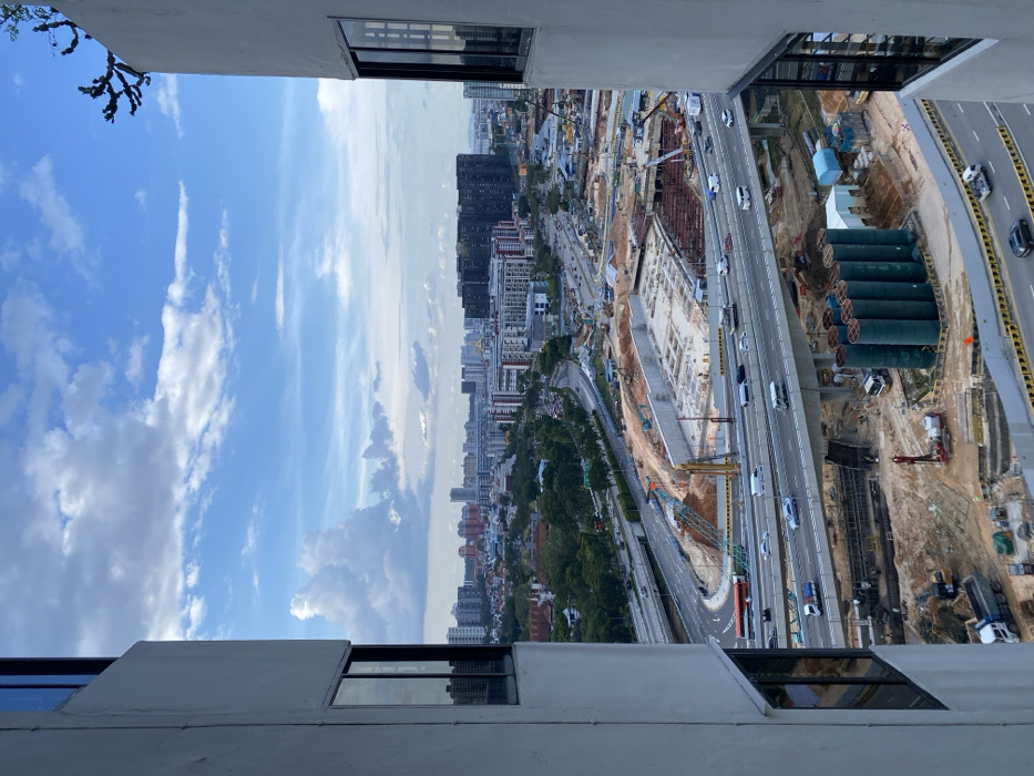 - "The image depicts an elevated, outward-looking view of an urban landscape in Singapore, framed by the white exterior walls and reflective windows of a high-rise building on the left and right" by FM-VIFEX2, licensed under CC BY 4.0