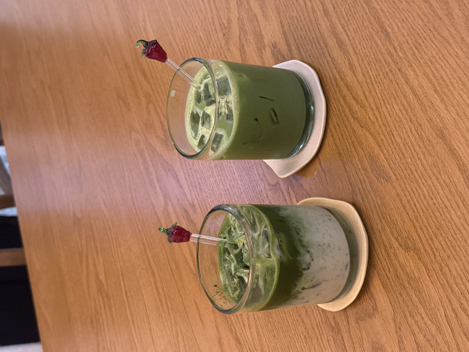 - "The image displays two iced green beverages on a light-colored wooden table" by FM-AIn2W2, licensed under CC BY 4.0