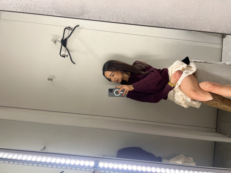 - "The image displays a female individual taking a mirror selfie within an indoor setting, consistent with a retail dressing room" by FM-3fAFE2, licensed under CC BY 4.0
