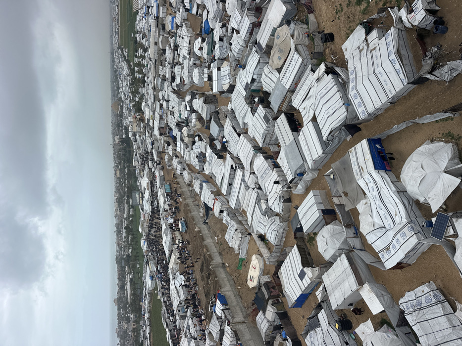 - "An aerial, high-angle perspective captures a vast, densely populated temporary settlement under an overcast sky, extending towards a coastal urban area" by FM-zF1RI3, licensed under CC BY 4.0