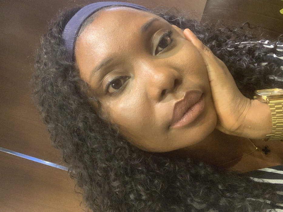 - "A close-up portrait captures a female individual with dark skin, dark curly hair, and dark eyes, looking directly at the viewer" by FM-O5WCg2, licensed under CC BY 4.0
