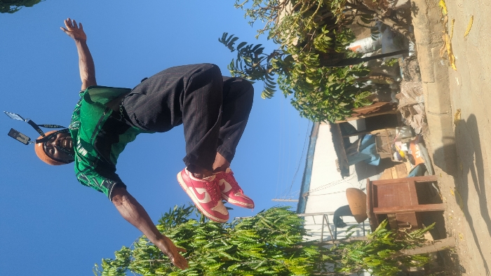 - "An individual is captured mid-jump against a clear blue sky in Narayi, Nigeria" by FM-tOkNi1, licensed under CC BY 4.0