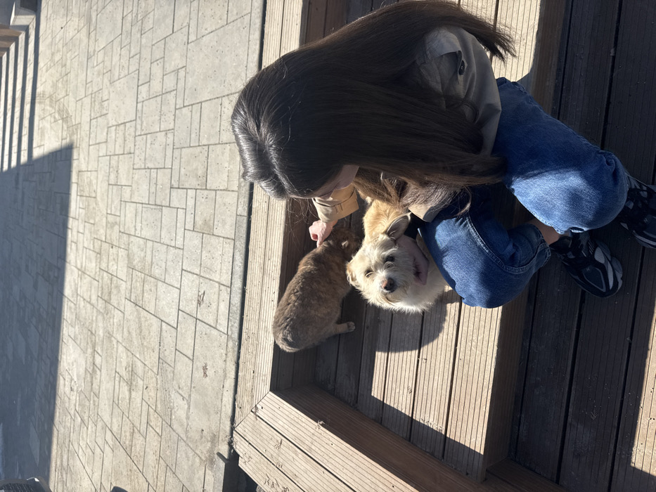 - "The image captures a female interacting with a dog and a cat on a sunny day in Căciulați, Romania" by FM-uEVzD3, licensed under CC BY 4.0