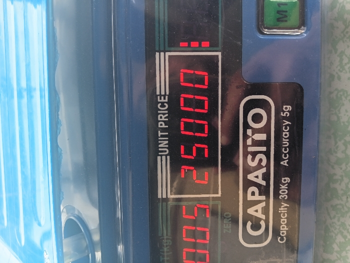 A close-up shot shows a blue digital scale