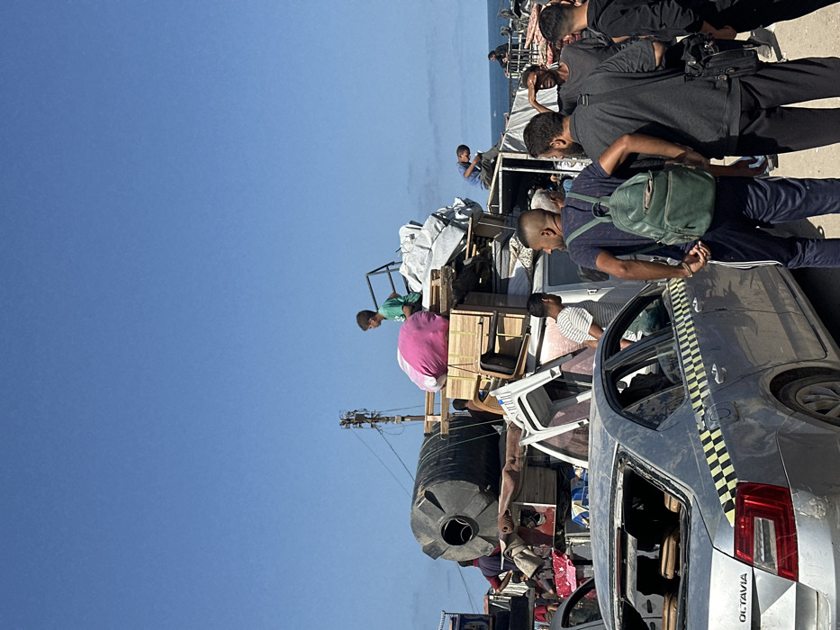 The image captures a crowded outdoor scene in Jazirat an Nasirat, Unknown, under a clear blue sky
