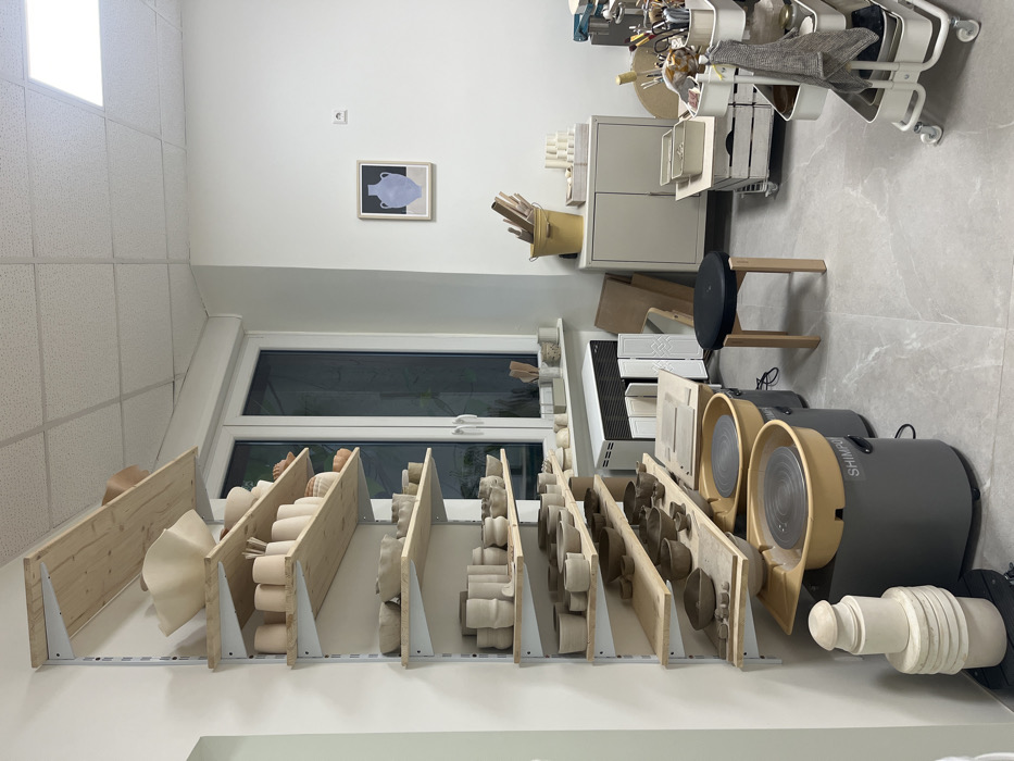 This image depicts an interior pottery studio or workshop located in Kaiserslautern, Germany