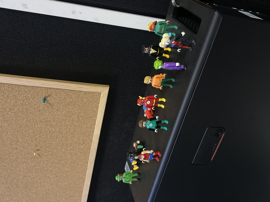 - "The scene depicts eleven Playmobil-style DC Comics figures positioned on the top surface of a black computer tower" by FM-CXkga2, licensed under CC BY 4.0