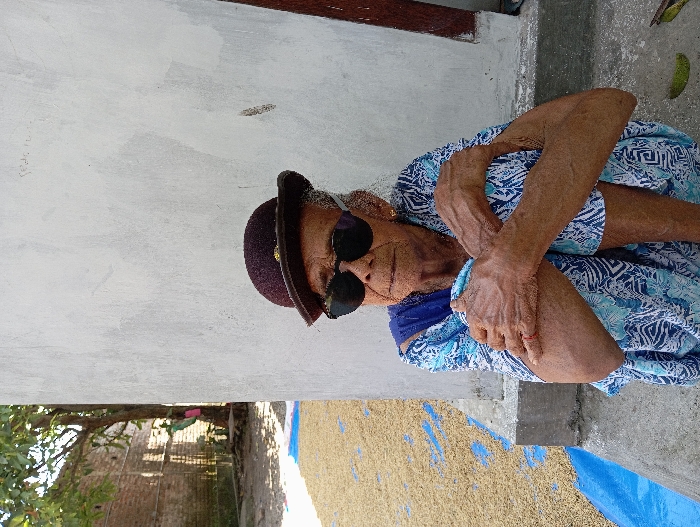 - "An elderly individual with dark skin and visible wrinkles is seated on a concrete step in Baron, Indonesia" by FM-TnUEx2, licensed under CC BY 4.0