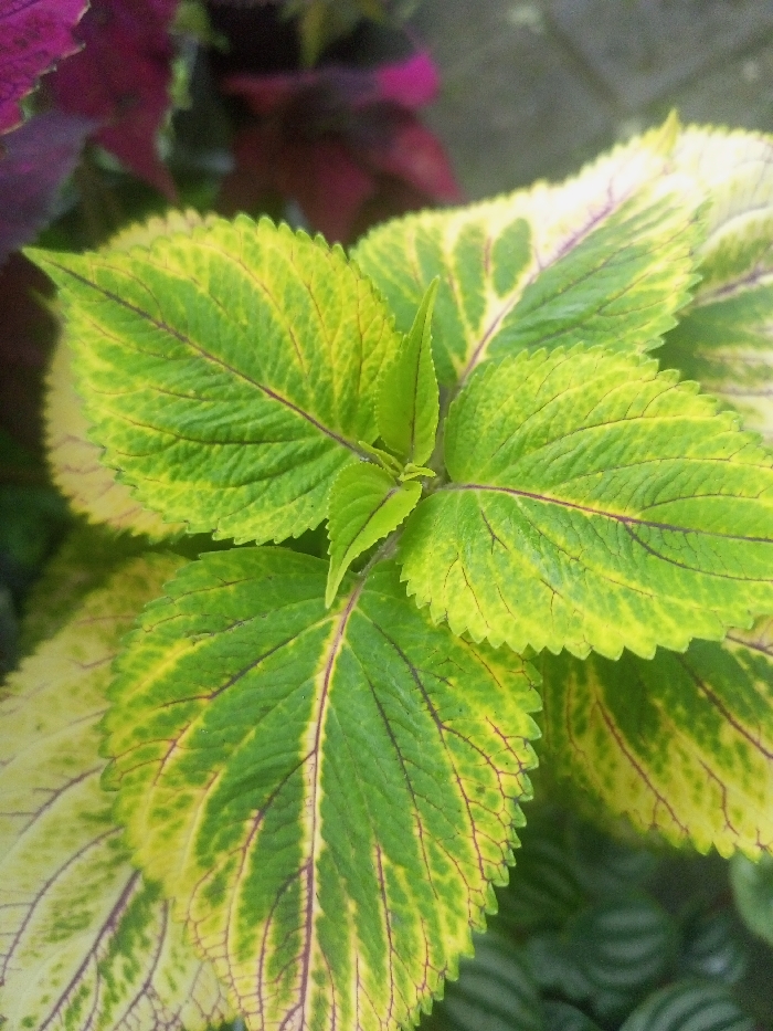 - "The scene captures a close-up view of variegated plant leaves, identified as a Coleus species, located in Zee Pin Kone, Myanmar" by FM-r4HQG2, licensed under CC BY 4.0