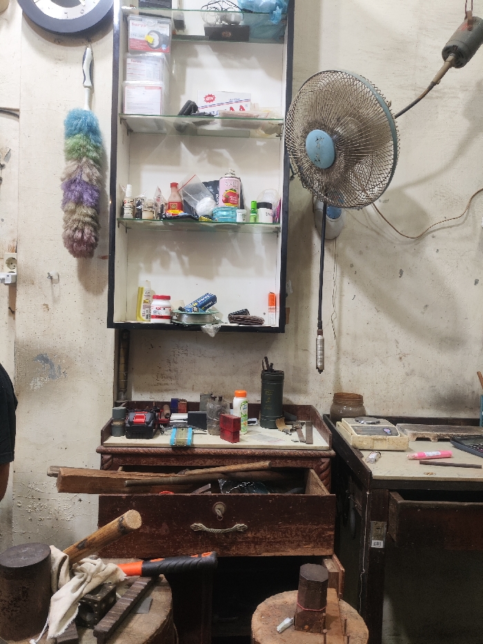 The scene depicts an interior workshop or retail space located in Gampongteungoh, Indonesia