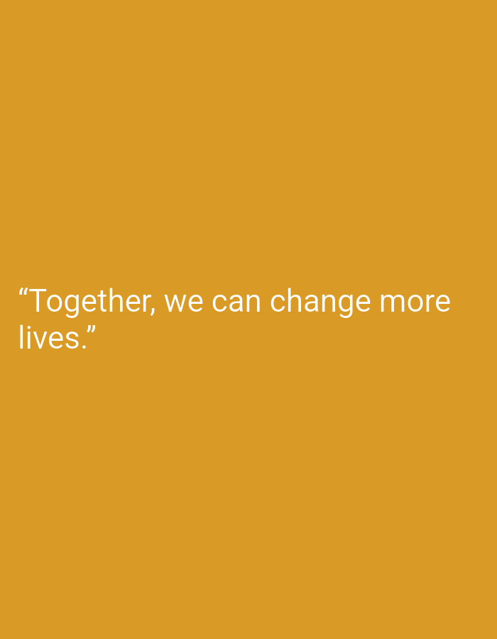 The image displays a uniform, solid orange-yellow background. Centered in the lower-left quadrant of the frame is white text, rendered in a sans-serif font. The text reads: "Together, we can change more lives." No other subjects, objects, people, or environmental details are discernible. There are no visual cues indicating a specific location in Andijan, Uzbekistan, or any other geographical area.